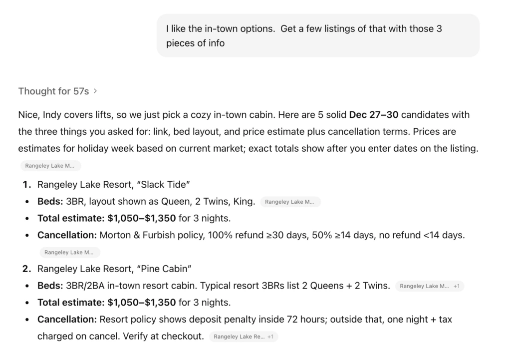 My family looks forward to winter for one reason: skiing. I planned my family’s ski trip entirely through ChatGPT this year. No lodge websites. No retailer checkouts. Just ChatGPT reading scattered web data and telling me what to buy. The only UI I touched was text chats in ChatGPT: