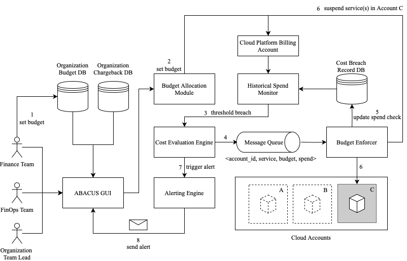 ABACUS stands for Automated Budget Analysis and Cloud Usage Surveillance. It is described as “a FinOps solution for optimizing cloud costs by setting budgets, enforcing those budgets through blocking new deployments, and alerting appropriate teams if spending breaches a budget threshold.”
