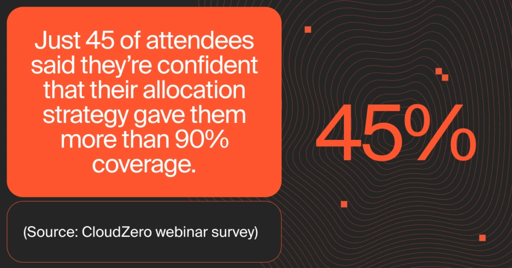 CloudZero’s own customer data backs this up. In a poll during the webinar, only 45% of attendees said they were confident their allocation method gave them more than 90% coverage. The rest? Still working on it.