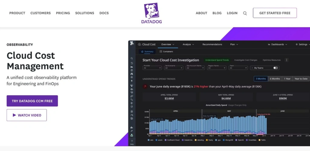 Datadog extended its observability platform to include Cloud Cost Management, connecting infrastructure metrics with billing data in a unified dashboard. Engineers who already use Datadog for monitoring can correlate cost anomalies with performance events, a genuinely useful capability for diagnosing spend spikes tied to application behavior.