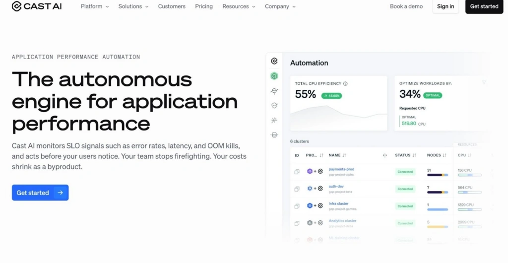 CAST AI automates Kubernetes cluster rightsizing, node provisioning, and Spot instance management across AWS, Azure, and GCP. It provides real-time recommendations and can implement changes autonomously, reducing Kubernetes costs without manual intervention from engineering teams.