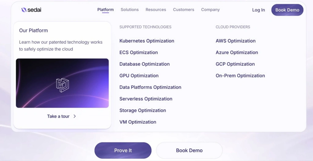 Sedai is an autonomous cloud optimization platform that uses patented reinforcement learning to adjust compute, storage, and data resources in real time. It supports AWS, Azure, GCP, Kubernetes as well as on-premises. Its greatest strength is fully autonomous execution.