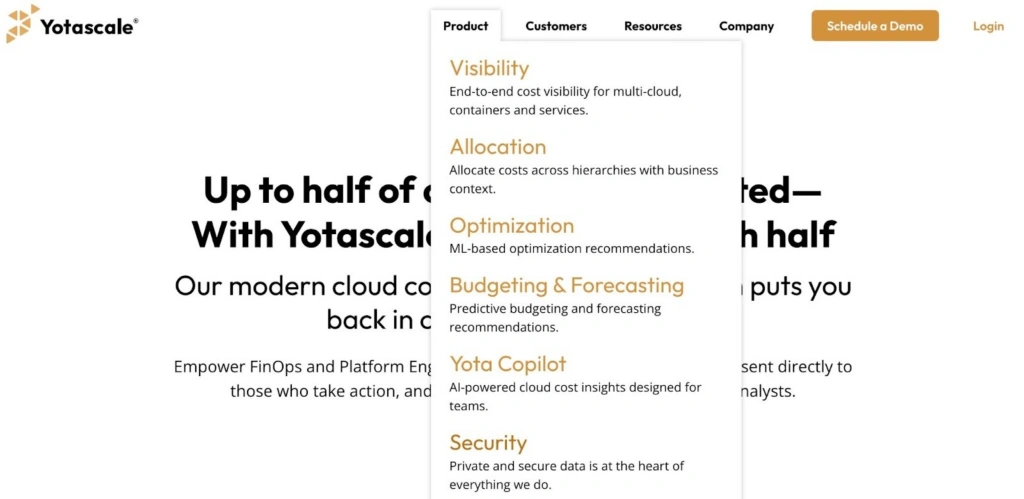 Yotascale uses machine learning to analyze usage patterns, detect anomalies, and deliver real-time cloud cost optimization recommendations. Yota Copilot, its generative AI assistant, enables conversational cost analysis.