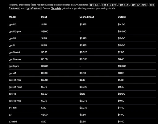 This is the section most pricing guides skip or oversimplify. ChatGPT API pricing is completely separate from ChatGPT subscription plans, and for engineering-heavy organizations, it’s often the larger expense.