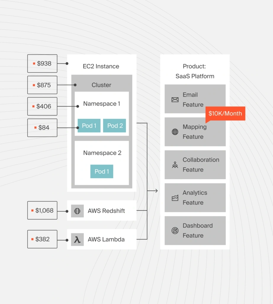 - Go beyond mere visibility by seeing your Kubernetes costs in business dimensions, including cost per individual customer, software feature, product, project, team, environment, and more.