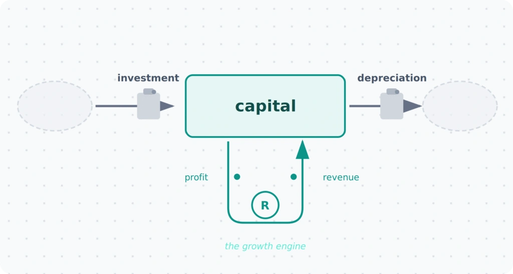 Every healthy company runs on a reinforcing feedback loop. Capital funds product investment. Product investment generates revenue. Revenue becomes profit. Profit flows back into capital. Left alone, this compounds. It’s the growth flywheel — the engine that got your company to where it is today.